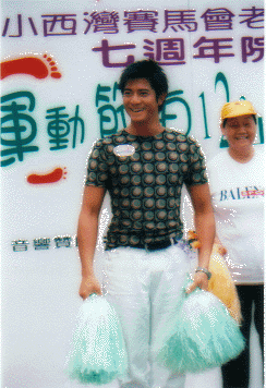 気をとりなおしてホテルに戻って支度をし、すっかり行きなれた香港コロシアムへ。今夜のイベントは、保良局(香港の厚生省みたいな所)の主催で、アーロンはそこのイメージキャラクターをしているので、何かと出番が多くて、嬉しい。肝心のステージも素晴らしい出来で、彼のダンスパフォーマンスが大好きな私達は大満足。これならリハーサルに時間がかかってたのも頷けるわ。線香を上げてるところを見られなかったのは残念だったけど、やはりステージでの彼が一番よね。