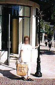 ←← 観光目的なので、ちゃんと写真も撮っておかない といけませんからね・・・。 ここもビバヒルではおなじみの場所ですよね。 ← ロデオ・ドライブでブランド・ショップの紙袋を持たな いヘンな日本人。おかげで貧乏な日本人に見て もらえるという妙な利点あり。(^^;) ちなみにこの日はいている白いジーンズが前日 GAPで買った超激安価格のもの。 |